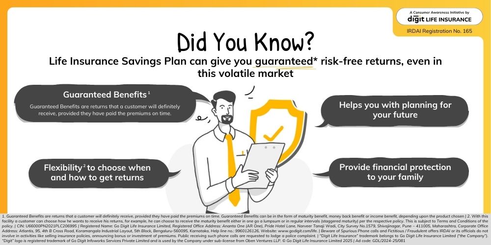 - Tax Benefits: Premiums paid towards life insurance policies are eligible for tax deductions under Section 80C of the Income Tax Act, 1961, making it a tax-efficient investment.